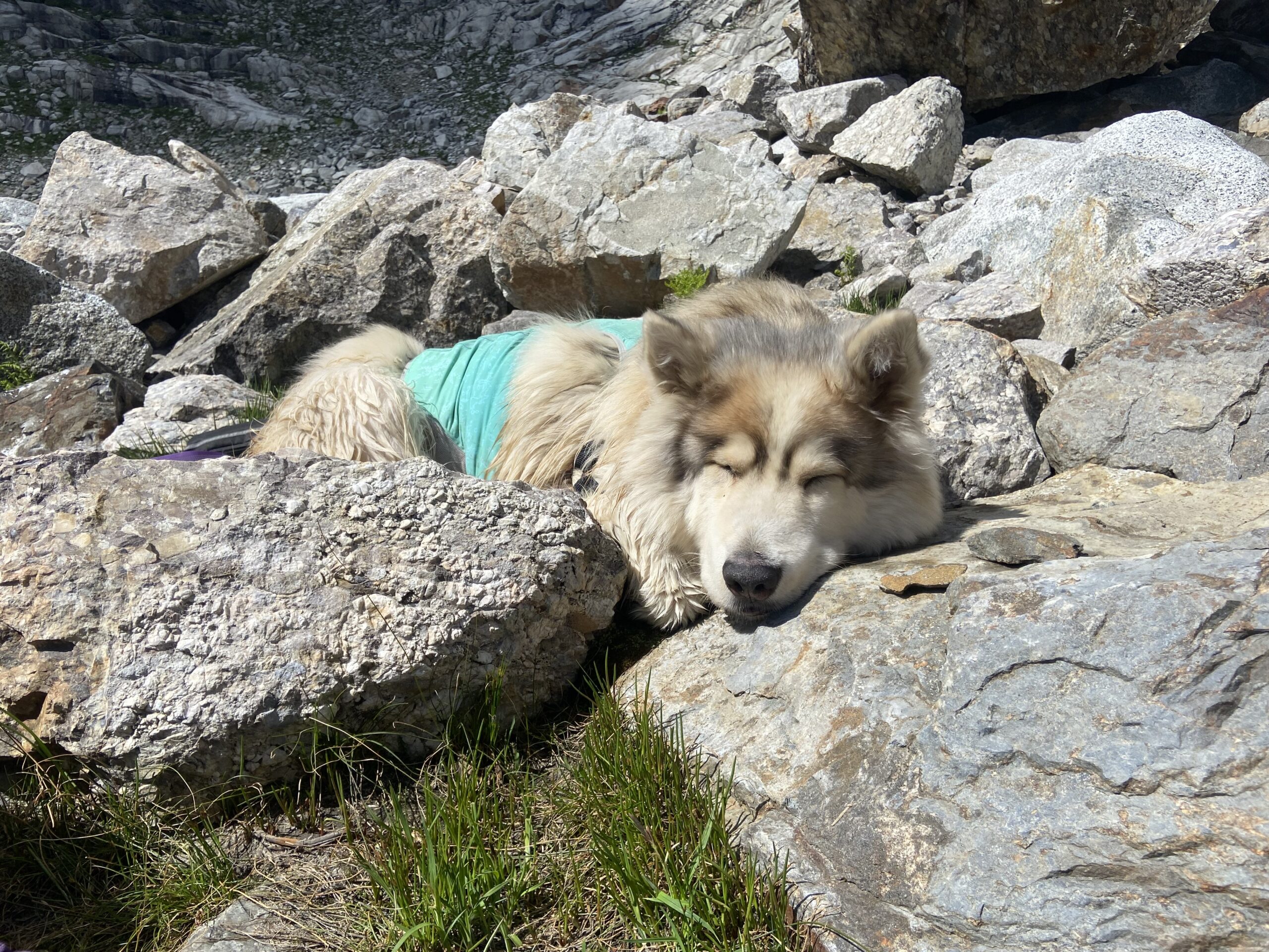 Yeti was the most beautiful, happy boy, who absolutely loved his life. He enjoyed snacks, snuggling, hiking, eating, backpacking, paddle boarding, xc skiing, biking and meal times. Most of all, he just liked to be with his pack, whether that was on an adventure, running errands or lazing around.