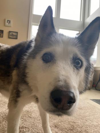 Xena, who was an approximately 10 year-old Malamute/Husky mix, came to us in September of 2020 after she was abandoned, rescued, and spent two months in a loving foster care home. Xena’s health was poor: her teeth were in bad condition, making it painful for her to eat kibble (she was the first dog to whom I fed canned dog food); her hips were painful, often making it difficult for her to walk; she was deaf; eye infections made it difficult for her to see; and despite a great diet in foster care, she remained quite emaciated. It was also clear from her behavior – she often kept her distance to avoid human contact and initially tried to sleep outside, even though she had clearly once been an indoor dog — that she had lived a lifetime of abuse and neglect.